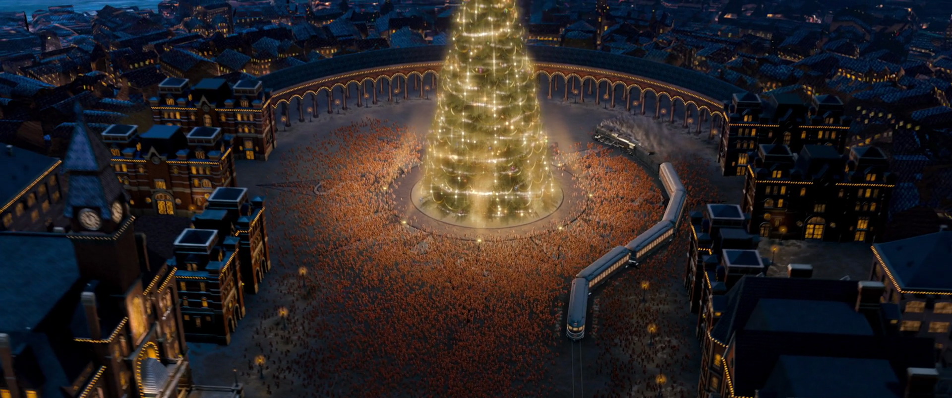 In the Polar Express, a magical train makes its way to North Pole, enduring adventures along the way. In the last scene, it arrives in North Pole Square where everyone awaits Santa’s visit. A few aerial shots of the scene show a gracefully curved square very similar to Plaza de España in Sevilla, Spain.